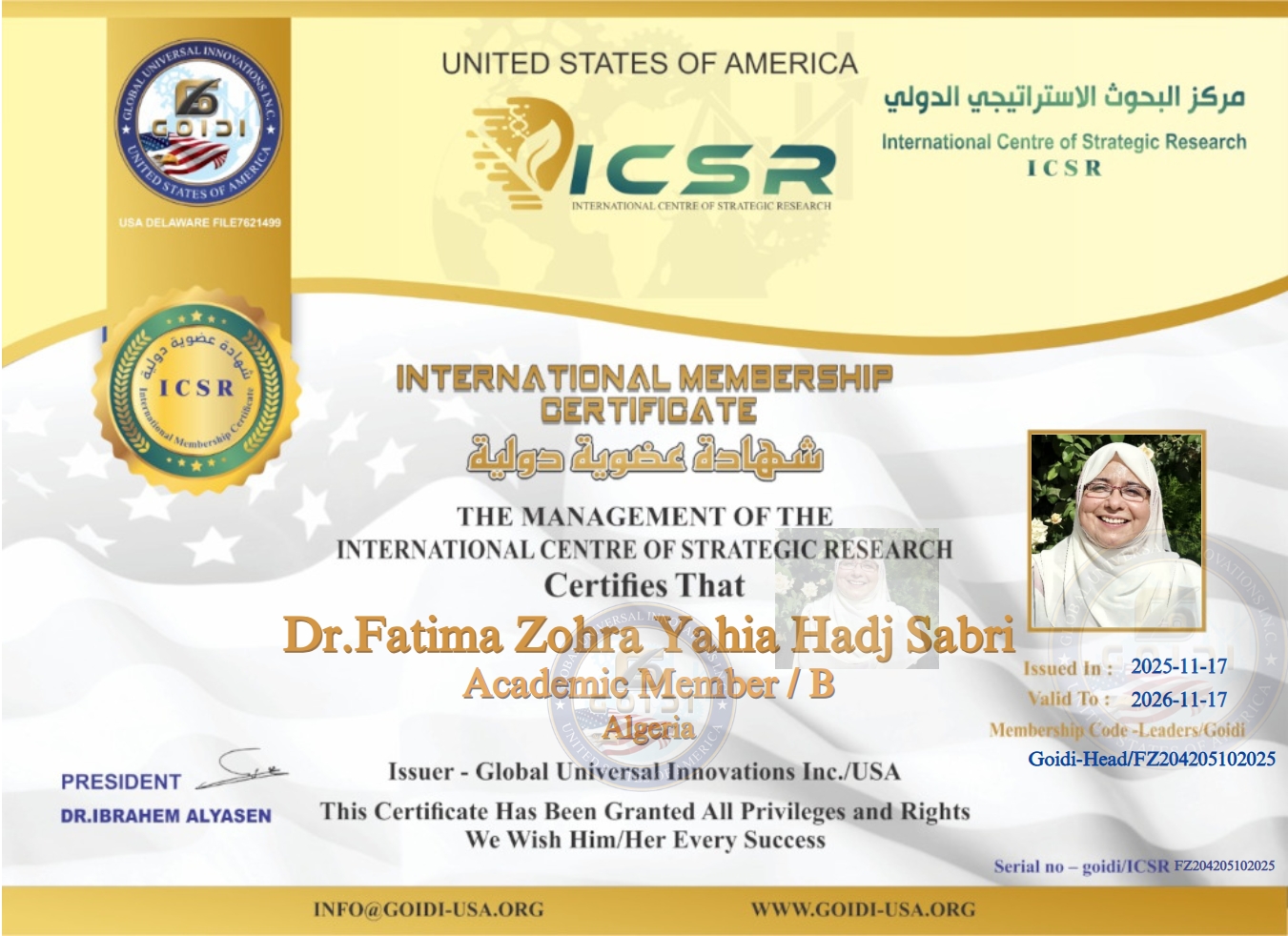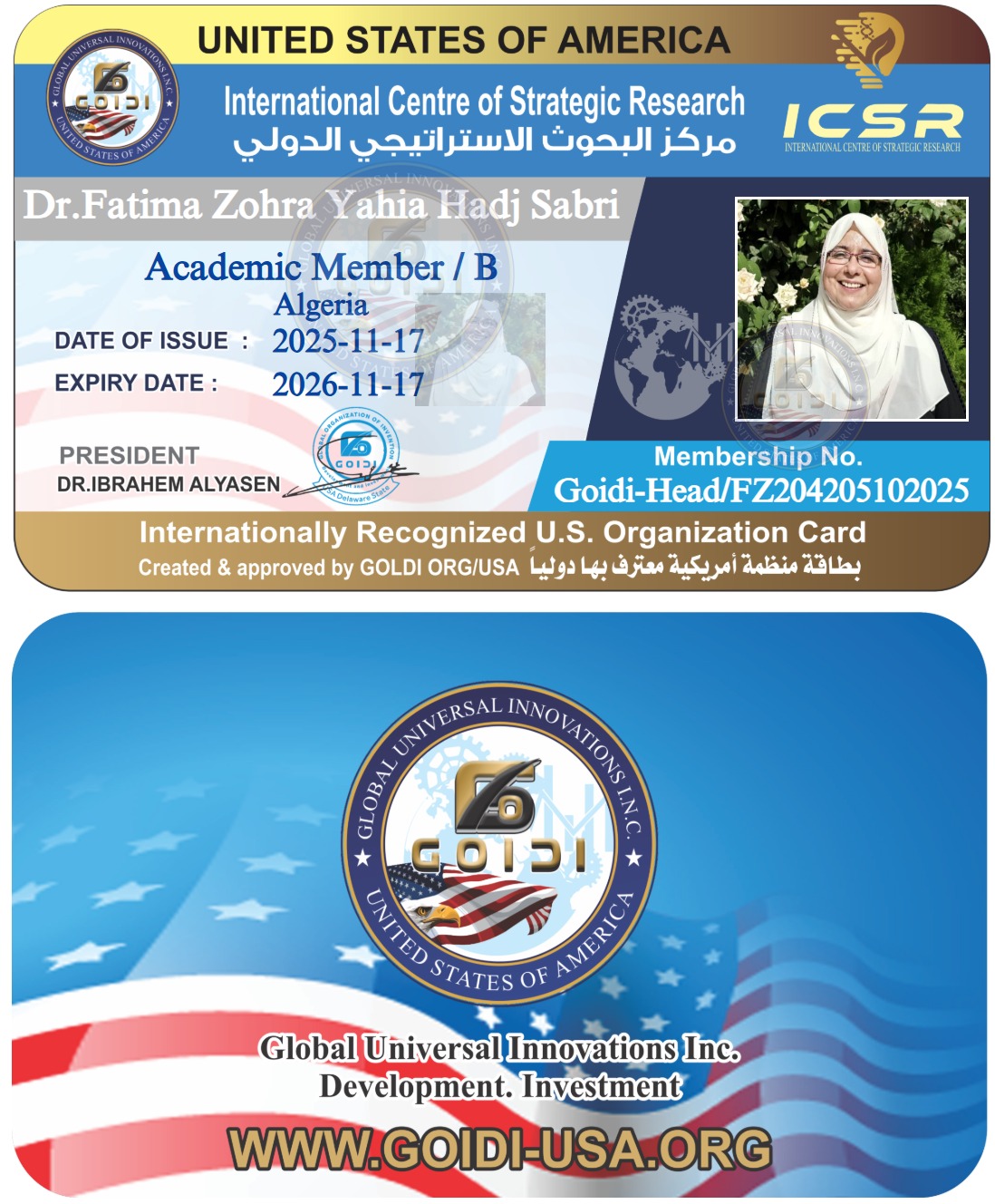 تبارك أدارة الهيئة العالمية الآمريكية اننساب العضو د فاطمة زهرة من دولة الجزائر