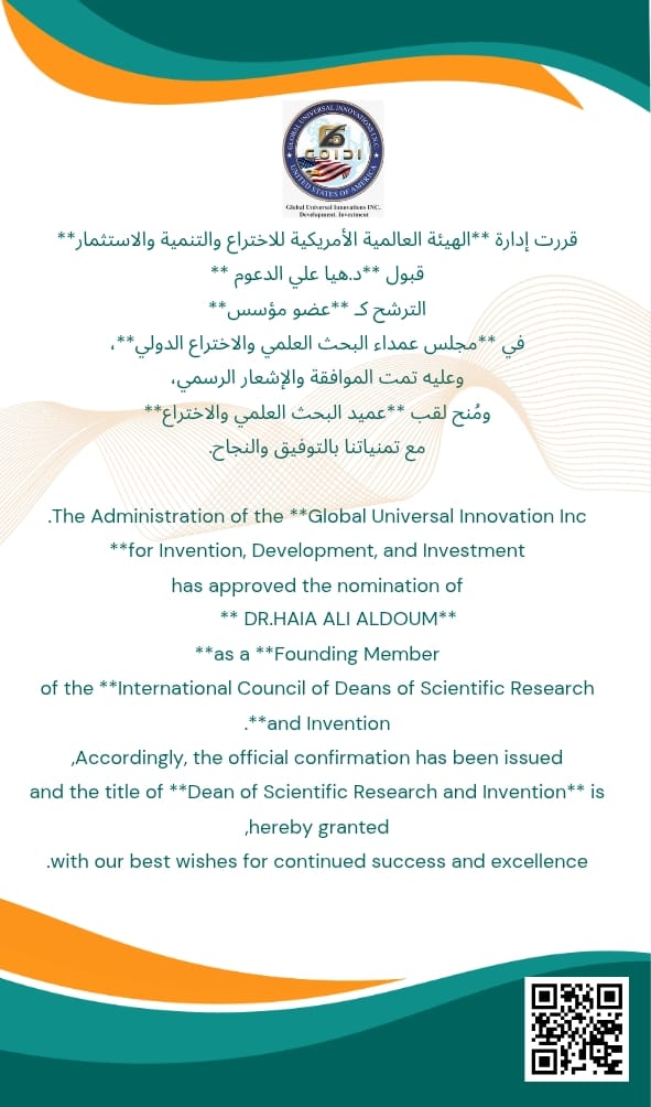 تبارك أدارة الهيئة العالمية الآمريكية للأختراع والتنمية والاستثمار