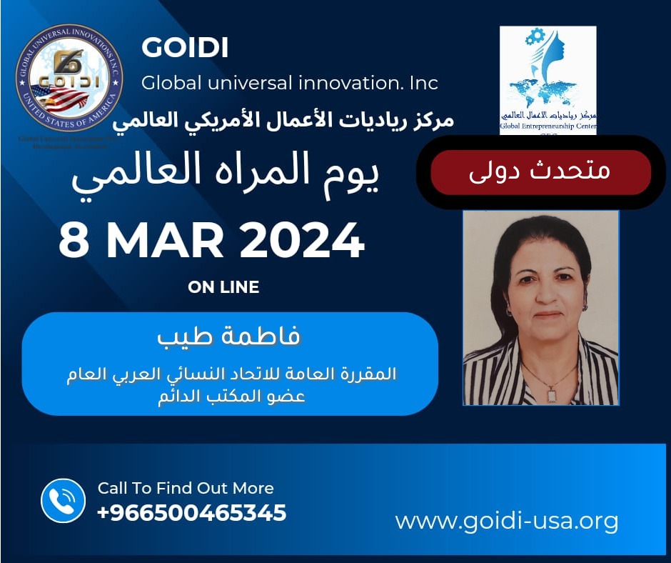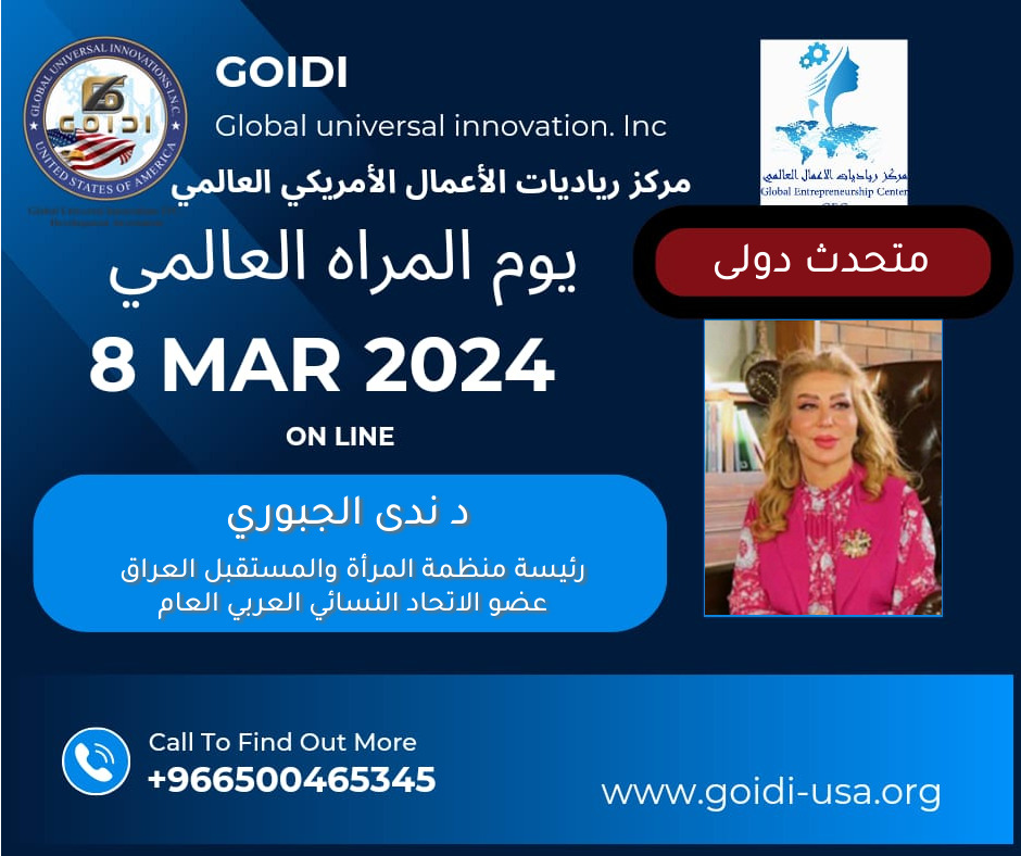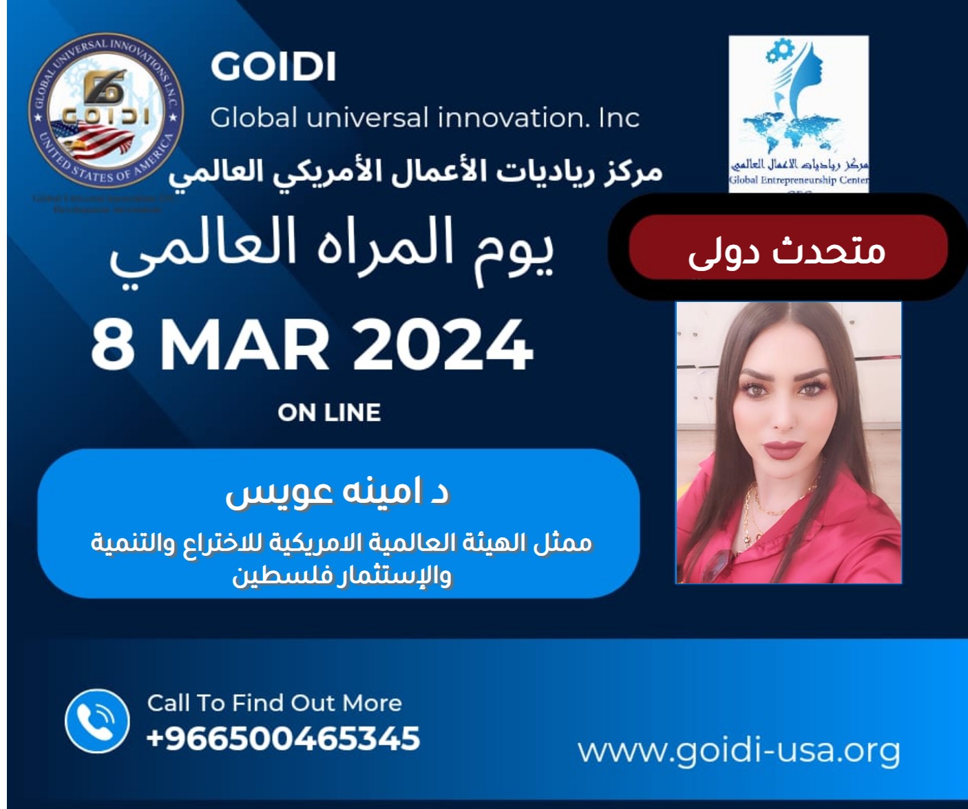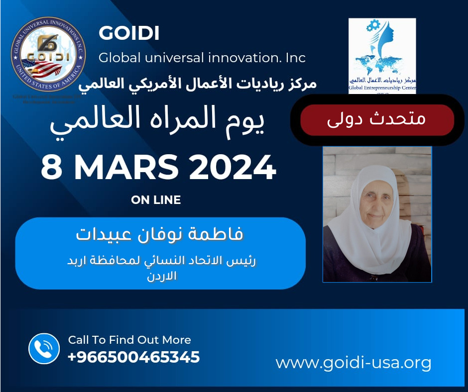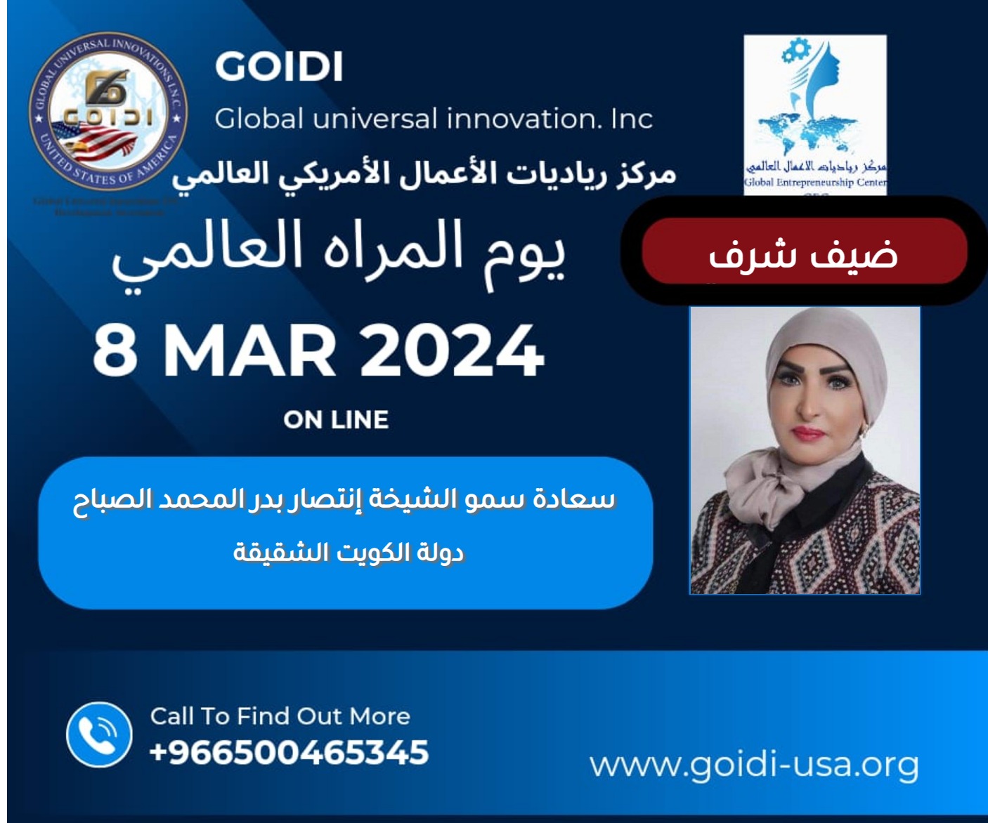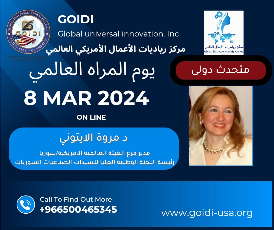 Accordingly, the Global universal Innovation.inc for Invention, Development, and Investment (G.O.I.D.I.), headquartered in the United States, has decided to celebrate this day with the women of the world through its Global Women Entrepreneurship Center (G.W.E.C.). G.W.E.C. is one of G.O.I.D.I.'s institutions that embraces women's programs.