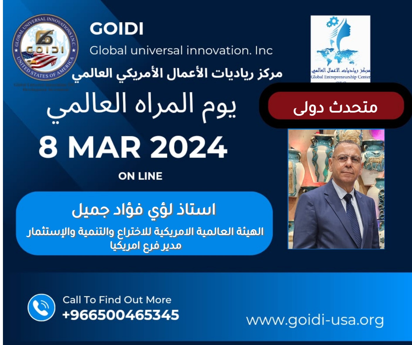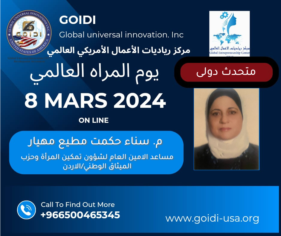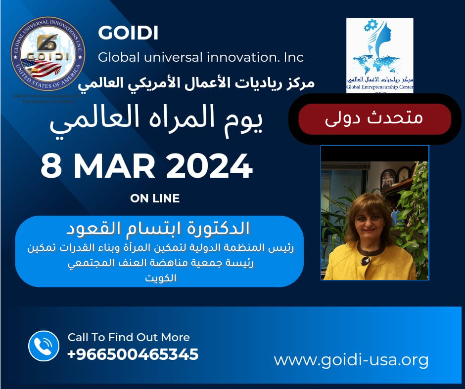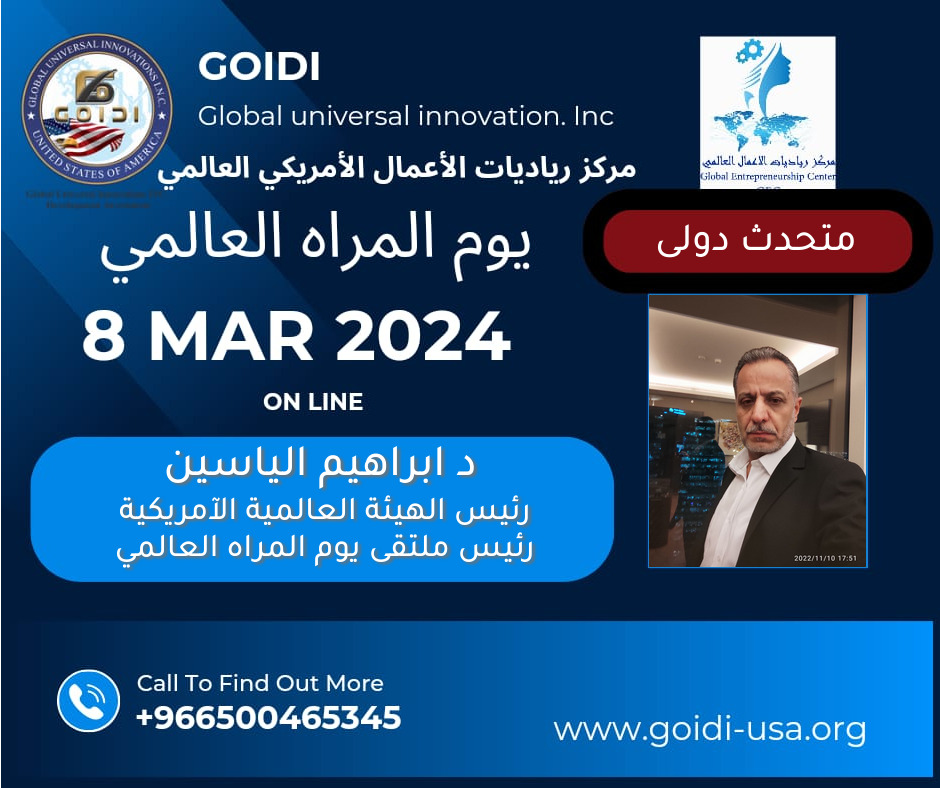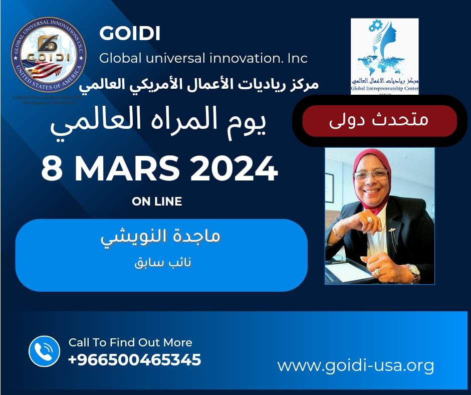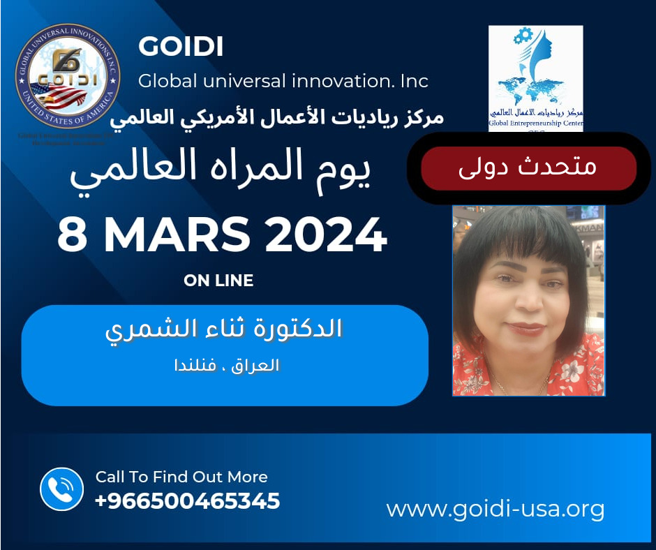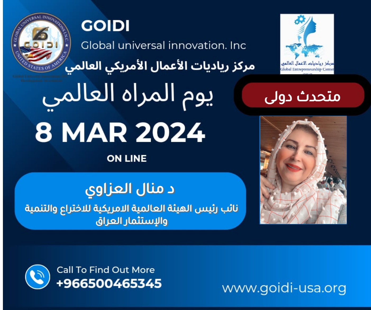 Accordingly, the Global universal Innovation.inc for Invention, Development, and Investment (G.O.I.D.I.), headquartered in the United States, has decided to celebrate this day with the women of the world through its Global Women Entrepreneurship Center (G.W.E.C.). G.W.E.C. is one of G.O.I.D.I.'s institutions that embraces women's programs.