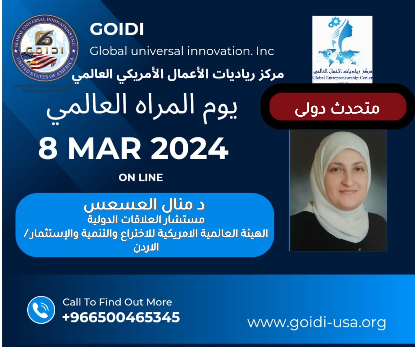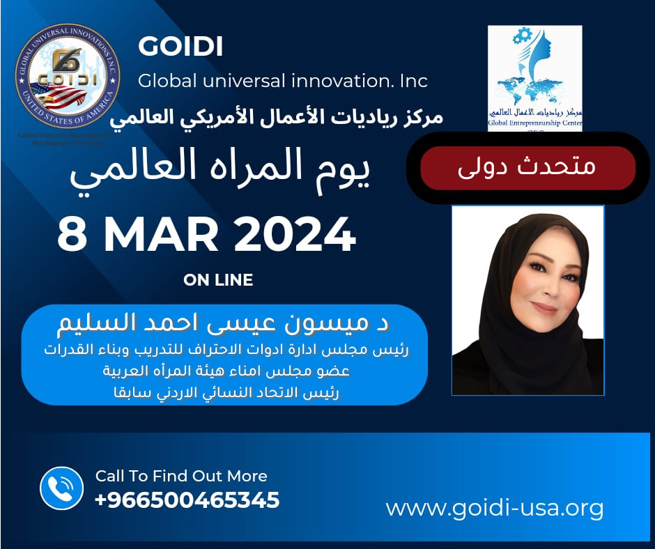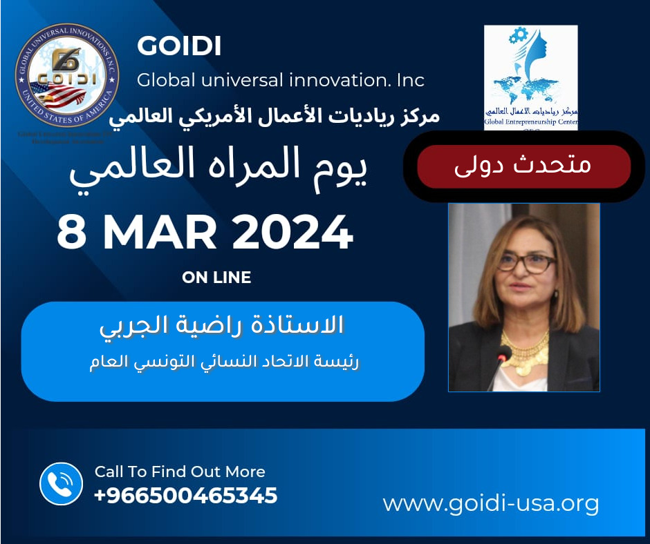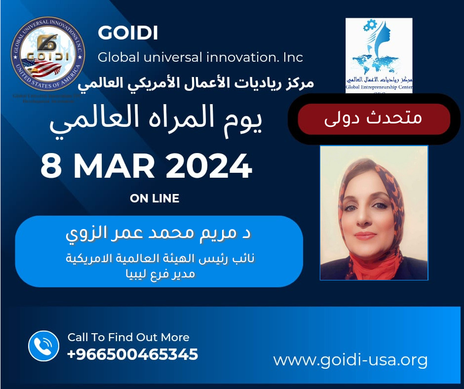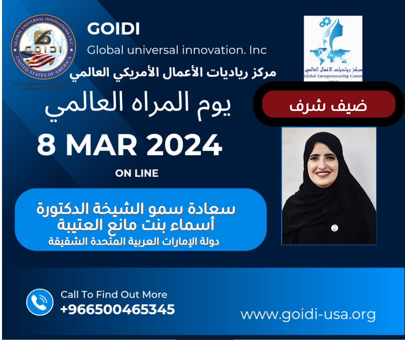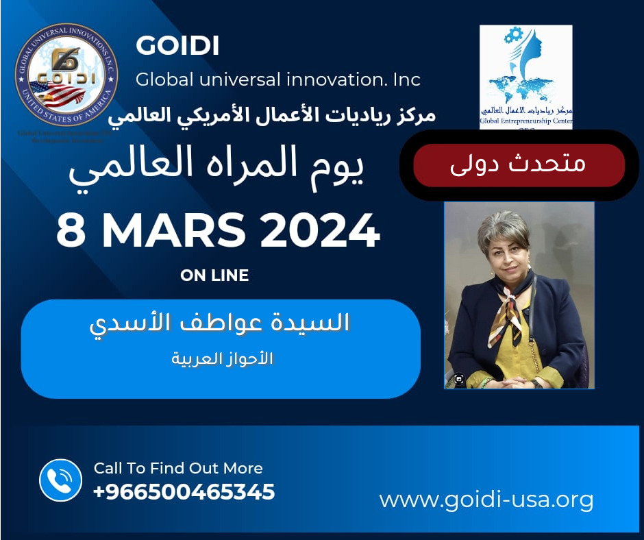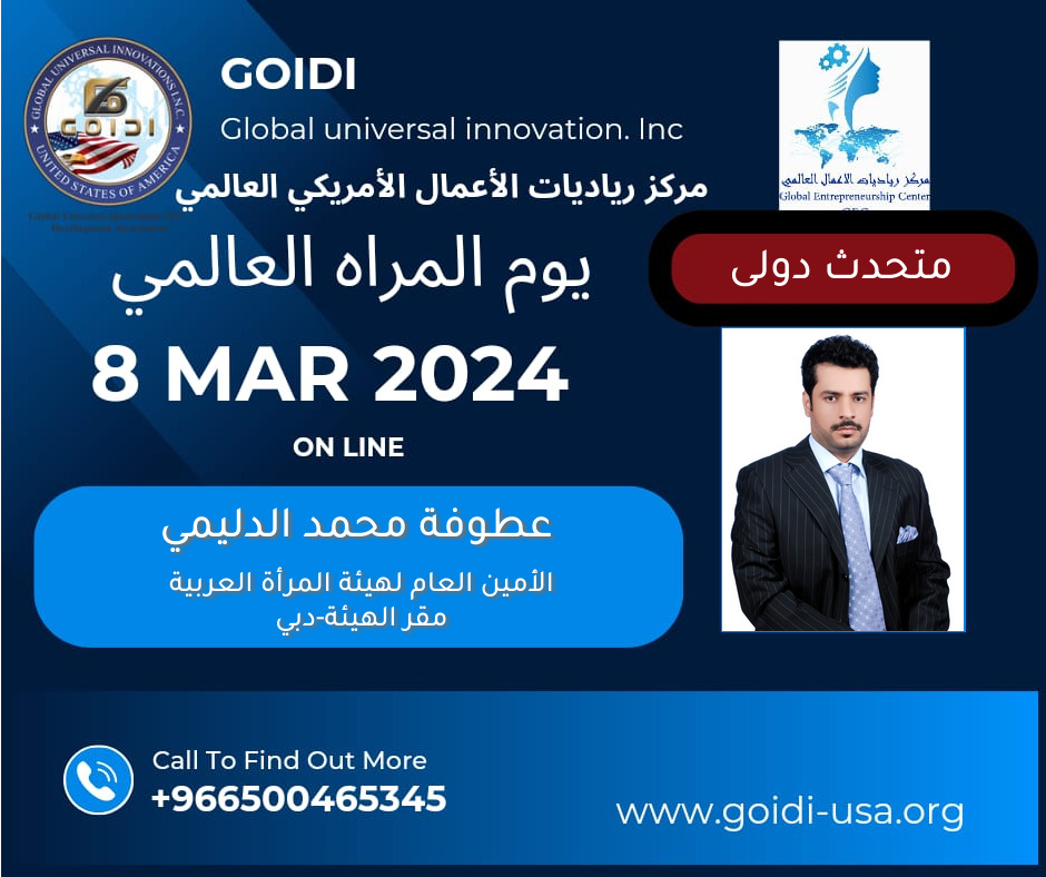 Accordingly, the Global universal Innovation.inc for Invention, Development, and Investment (G.O.I.D.I.), headquartered in the United States, has decided to celebrate this day with the women of the world through its Global Women Entrepreneurship Center (G.W.E.C.). G.W.E.C. is one of G.O.I.D.I.'s institutions that embraces women's programs.