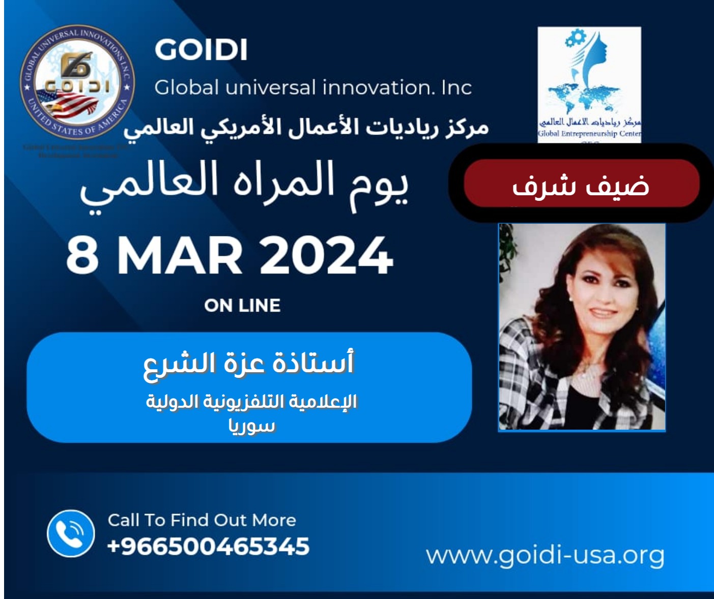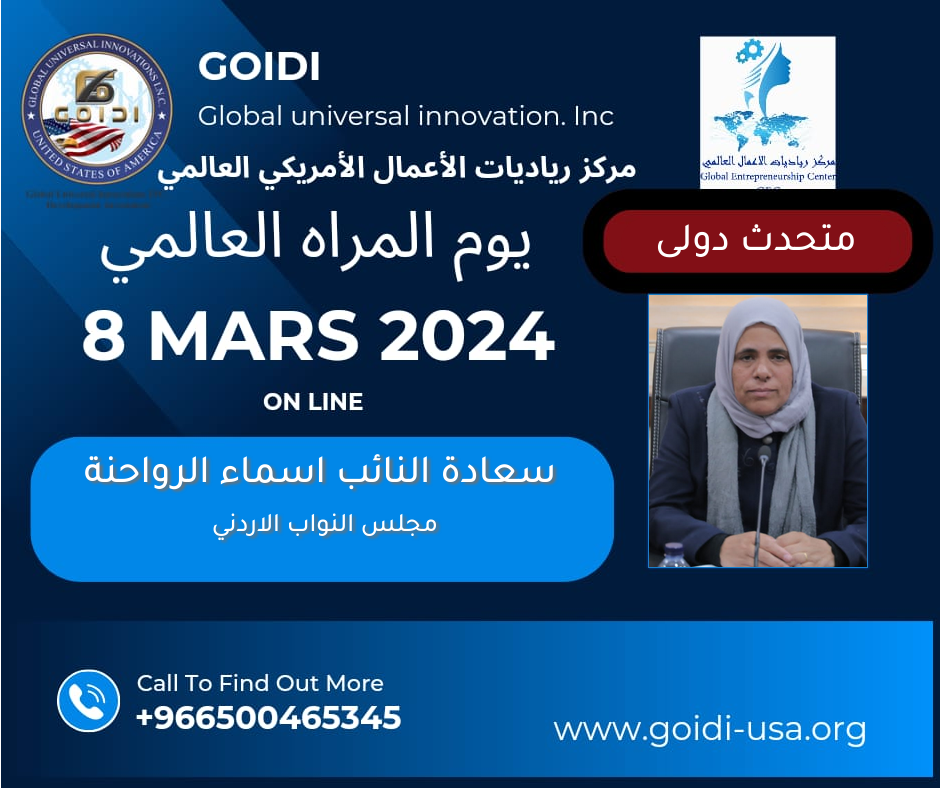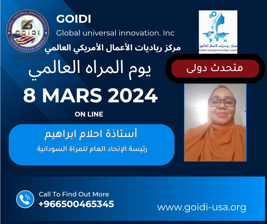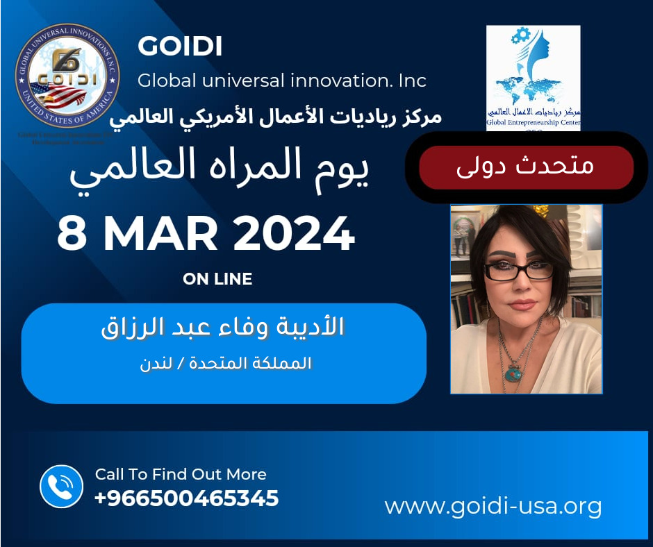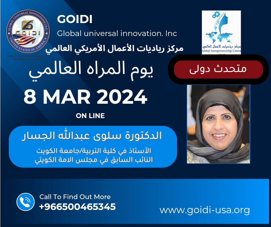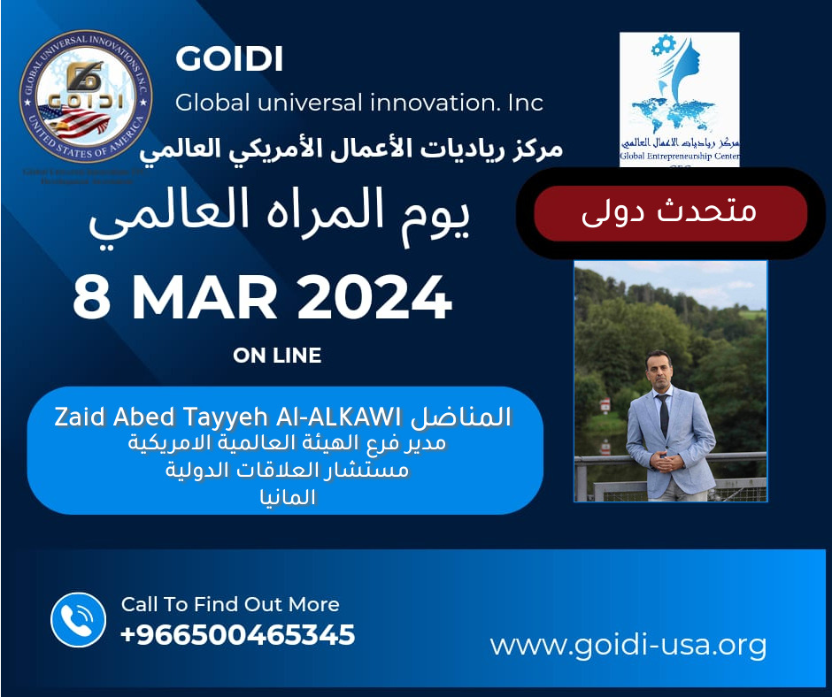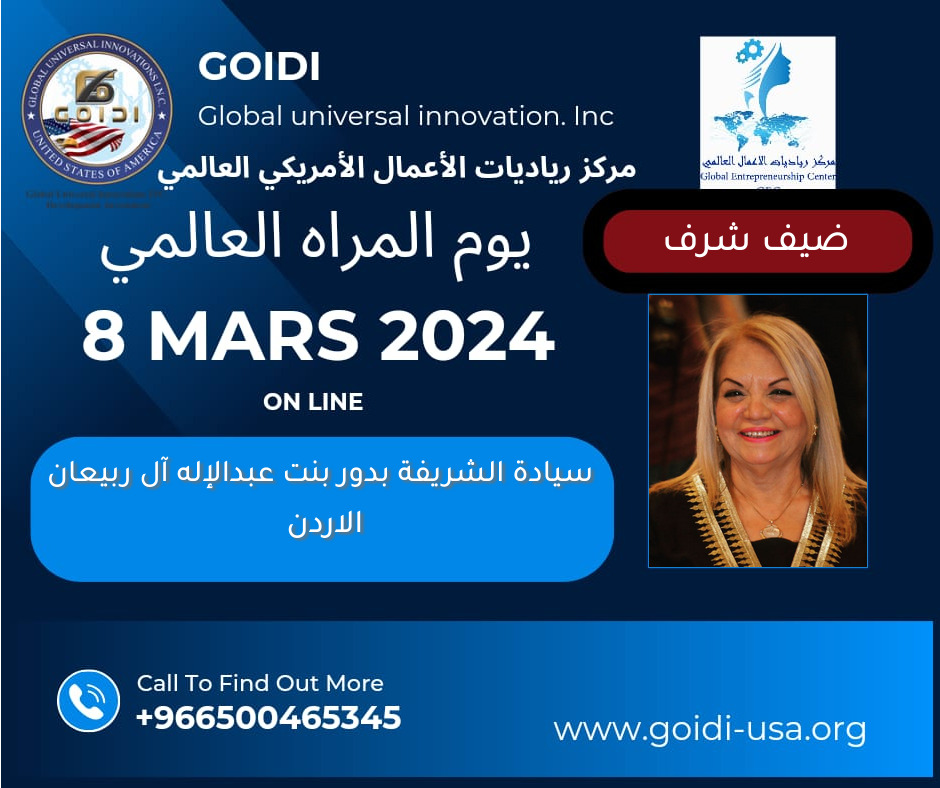 Accordingly, the Global universal Innovation.inc for Invention, Development, and Investment (G.O.I.D.I.), headquartered in the United States, has decided to celebrate this day with the women of the world through its Global Women Entrepreneurship Center (G.W.E.C.). G.W.E.C. is one of G.O.I.D.I.'s institutions that embraces women's programs.