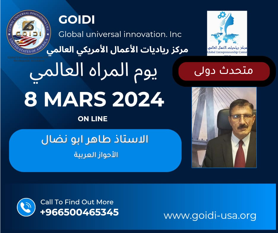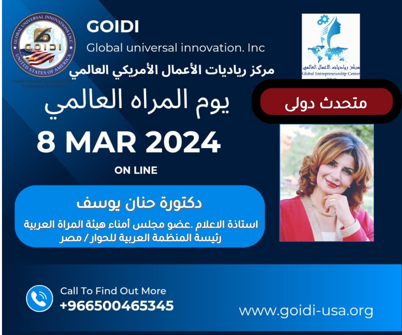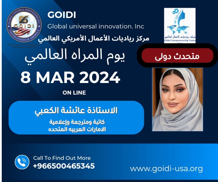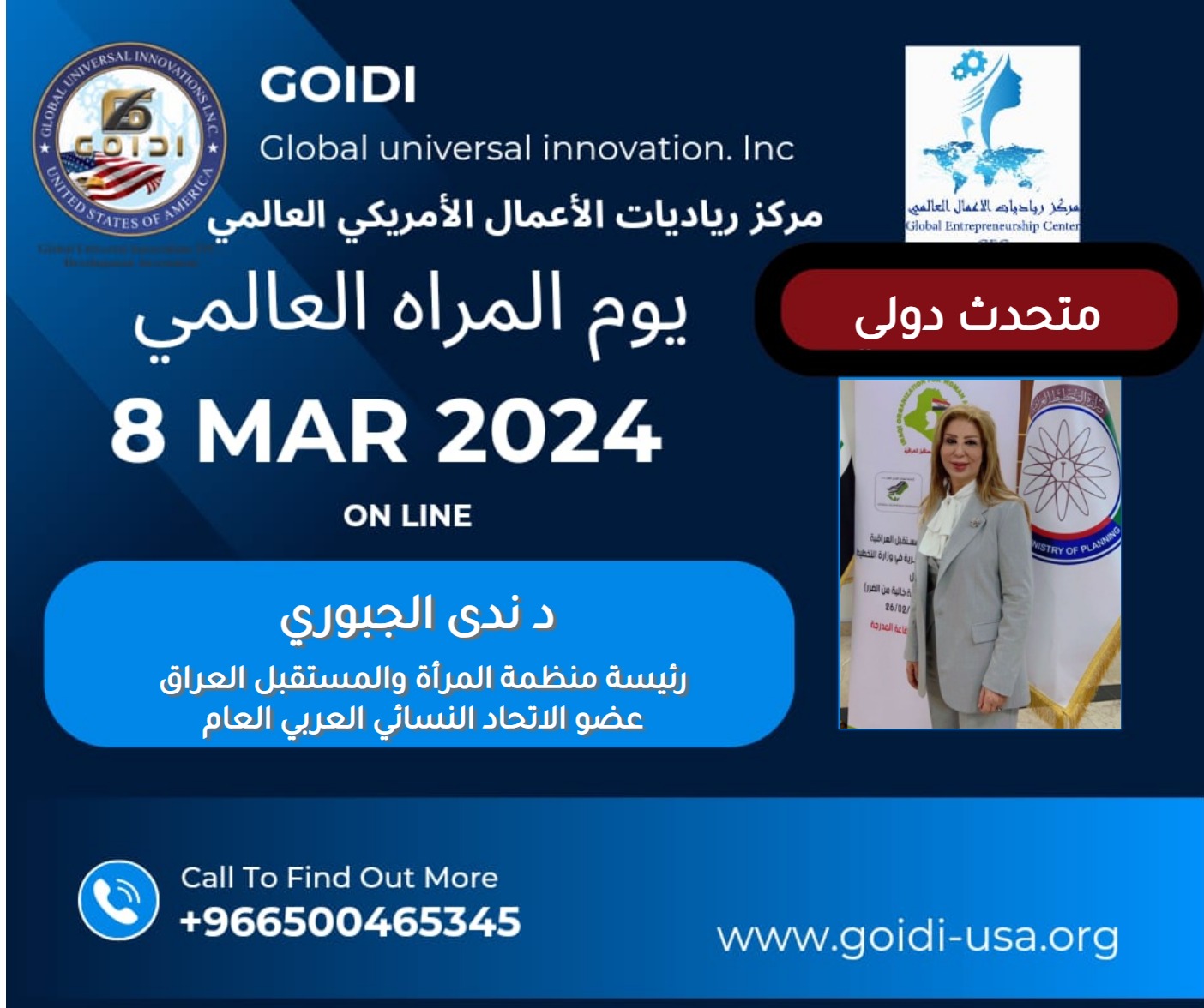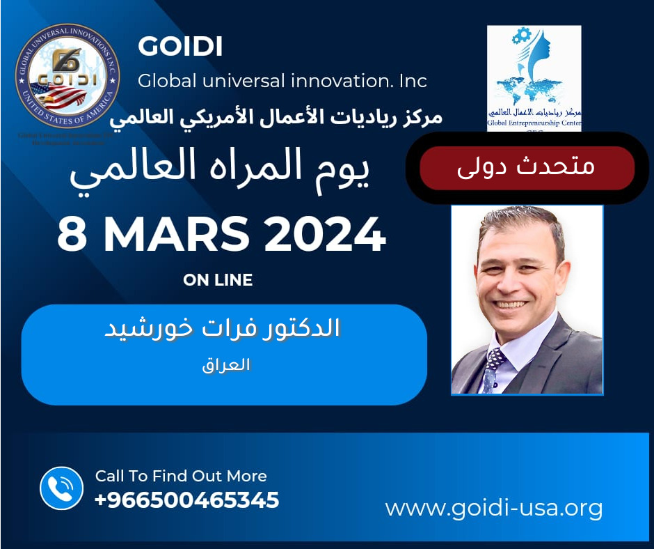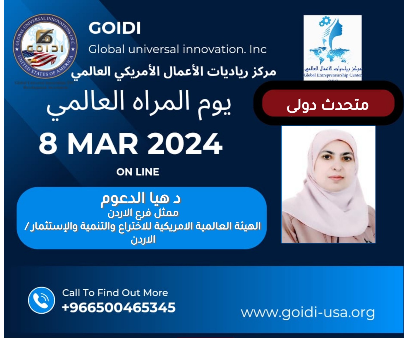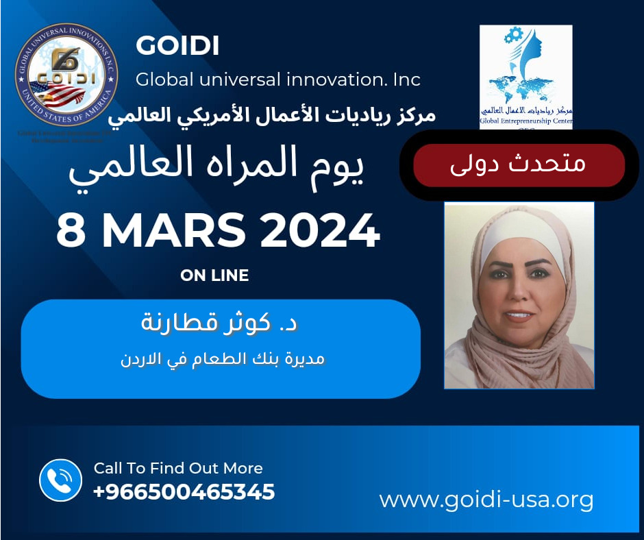 Accordingly, the Global universal Innovation.inc for Invention, Development, and Investment (G.O.I.D.I.), headquartered in the United States, has decided to celebrate this day with the women of the world through its Global Women Entrepreneurship Center (G.W.E.C.). G.W.E.C. is one of G.O.I.D.I.'s institutions that embraces women's programs.