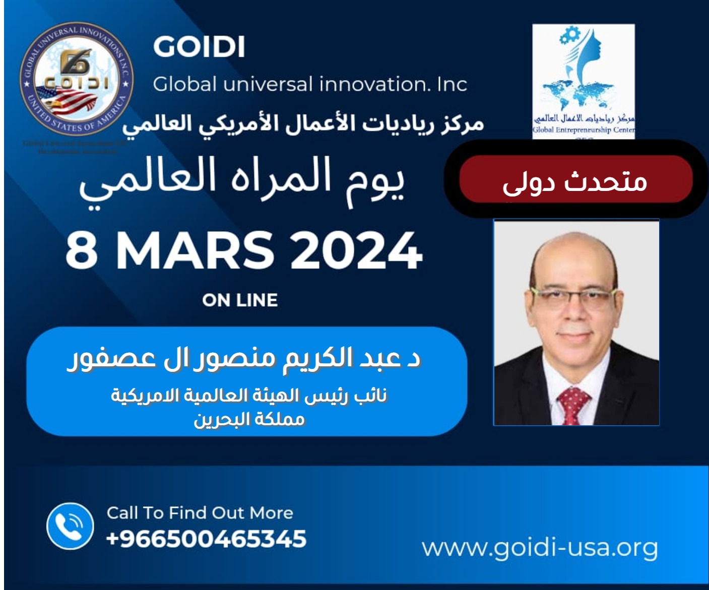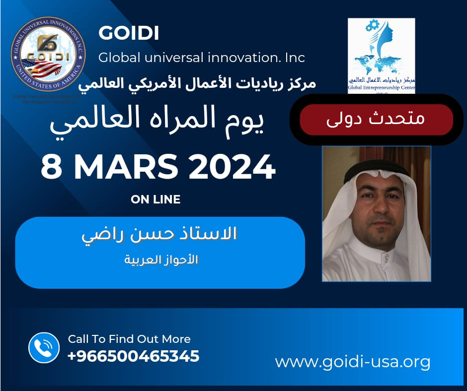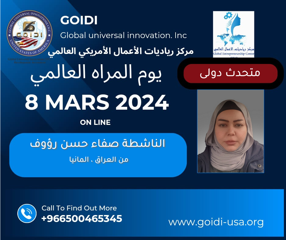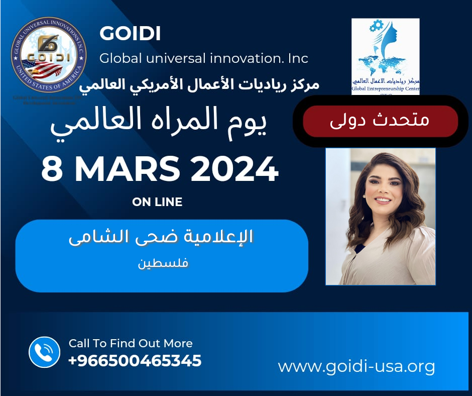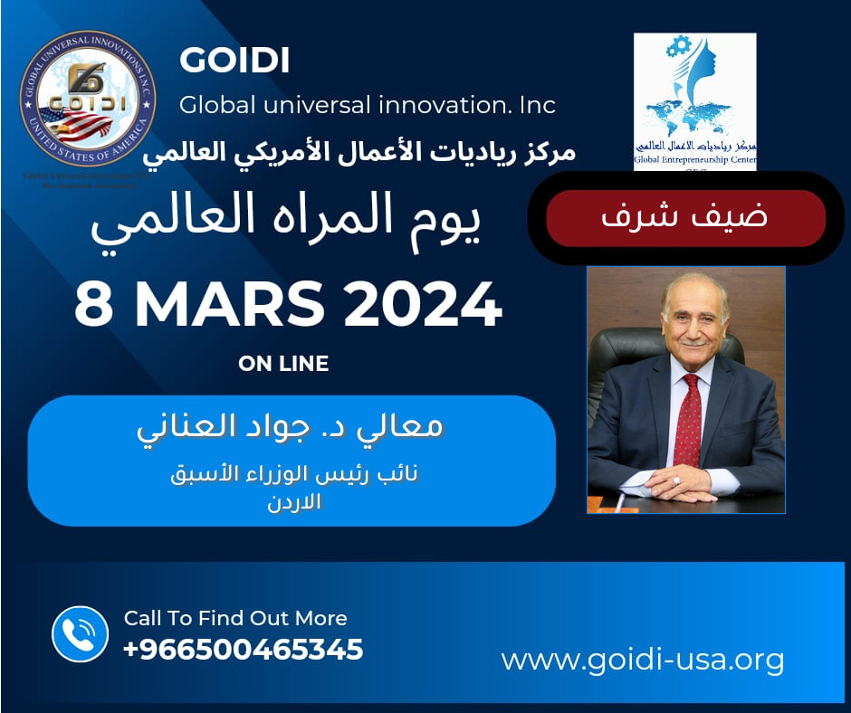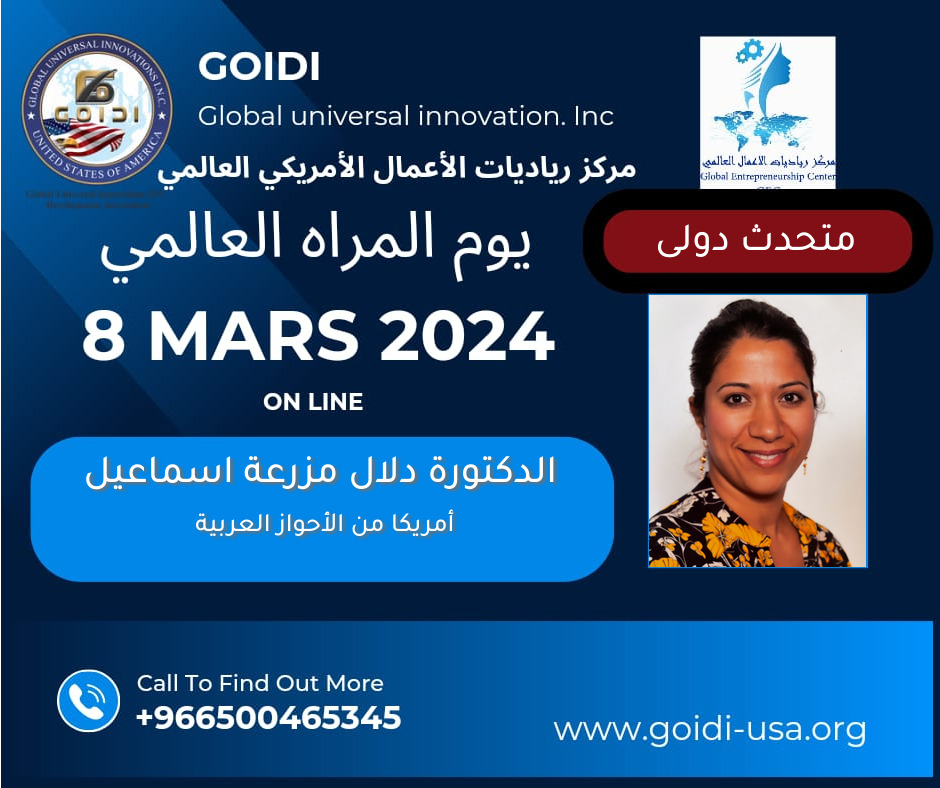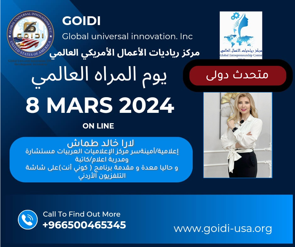 Accordingly, the Global universal Innovation.inc for Invention, Development, and Investment (G.O.I.D.I.), headquartered in the United States, has decided to celebrate this day with the women of the world through its Global Women Entrepreneurship Center (G.W.E.C.). G.W.E.C. is one of G.O.I.D.I.'s institutions that embraces women's programs.