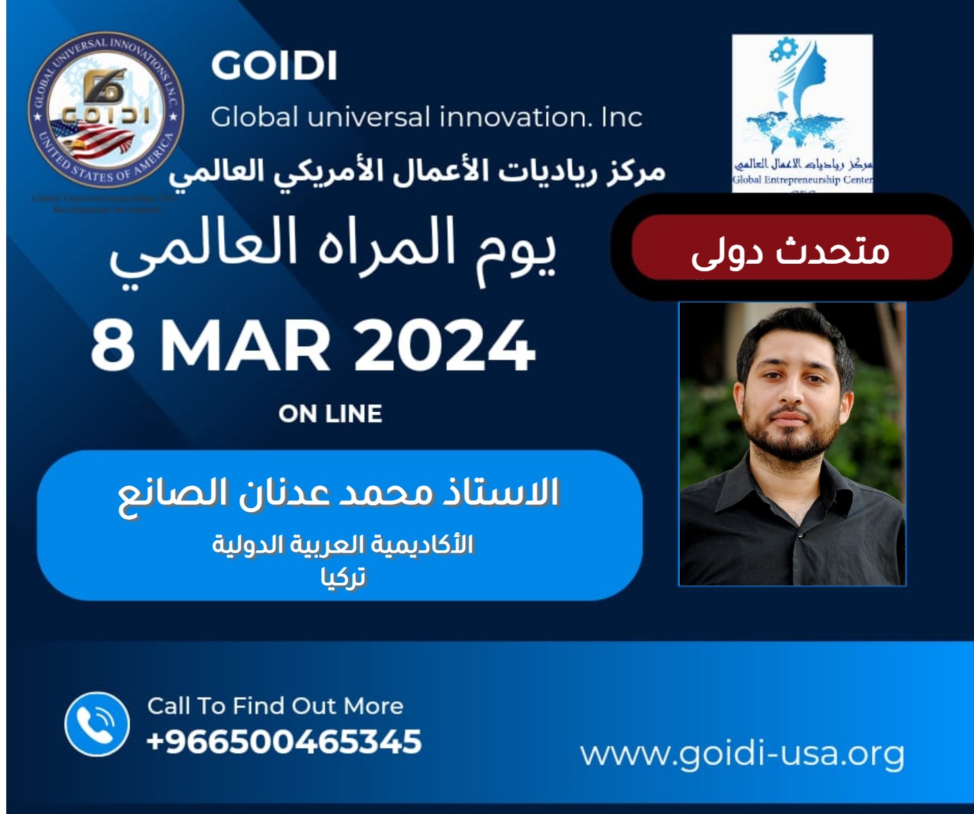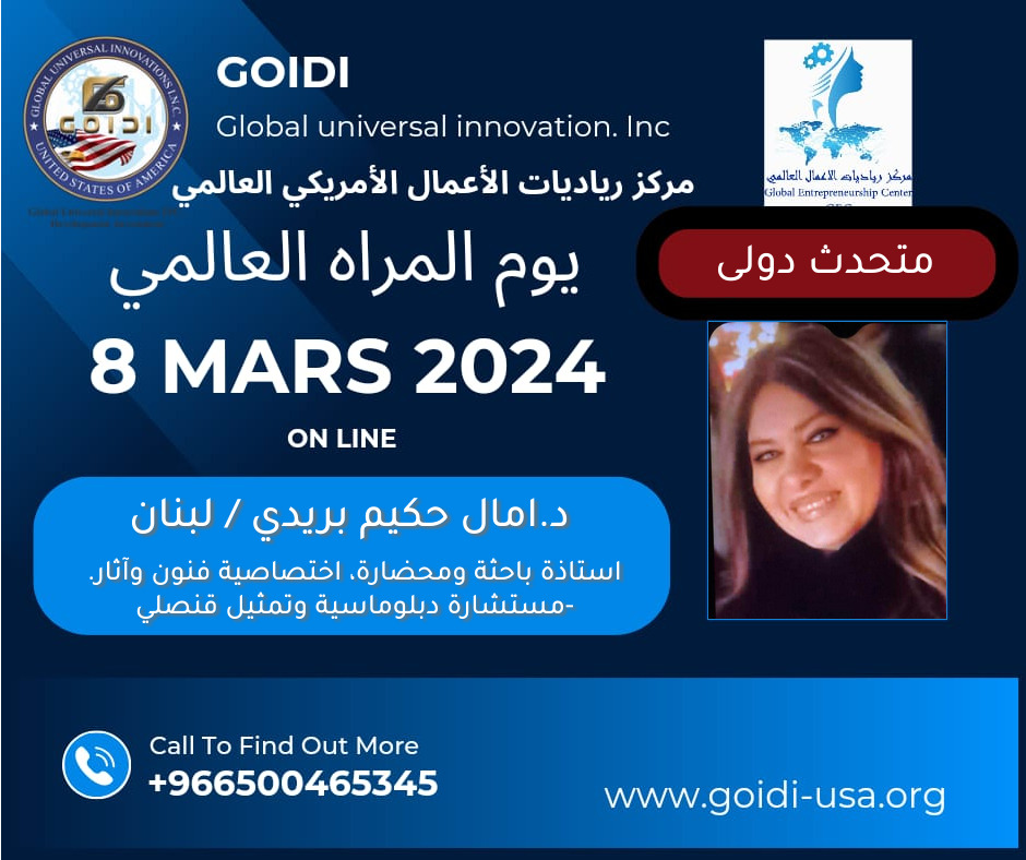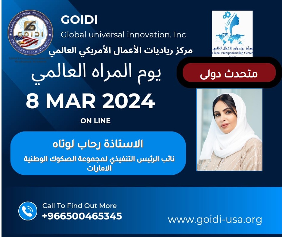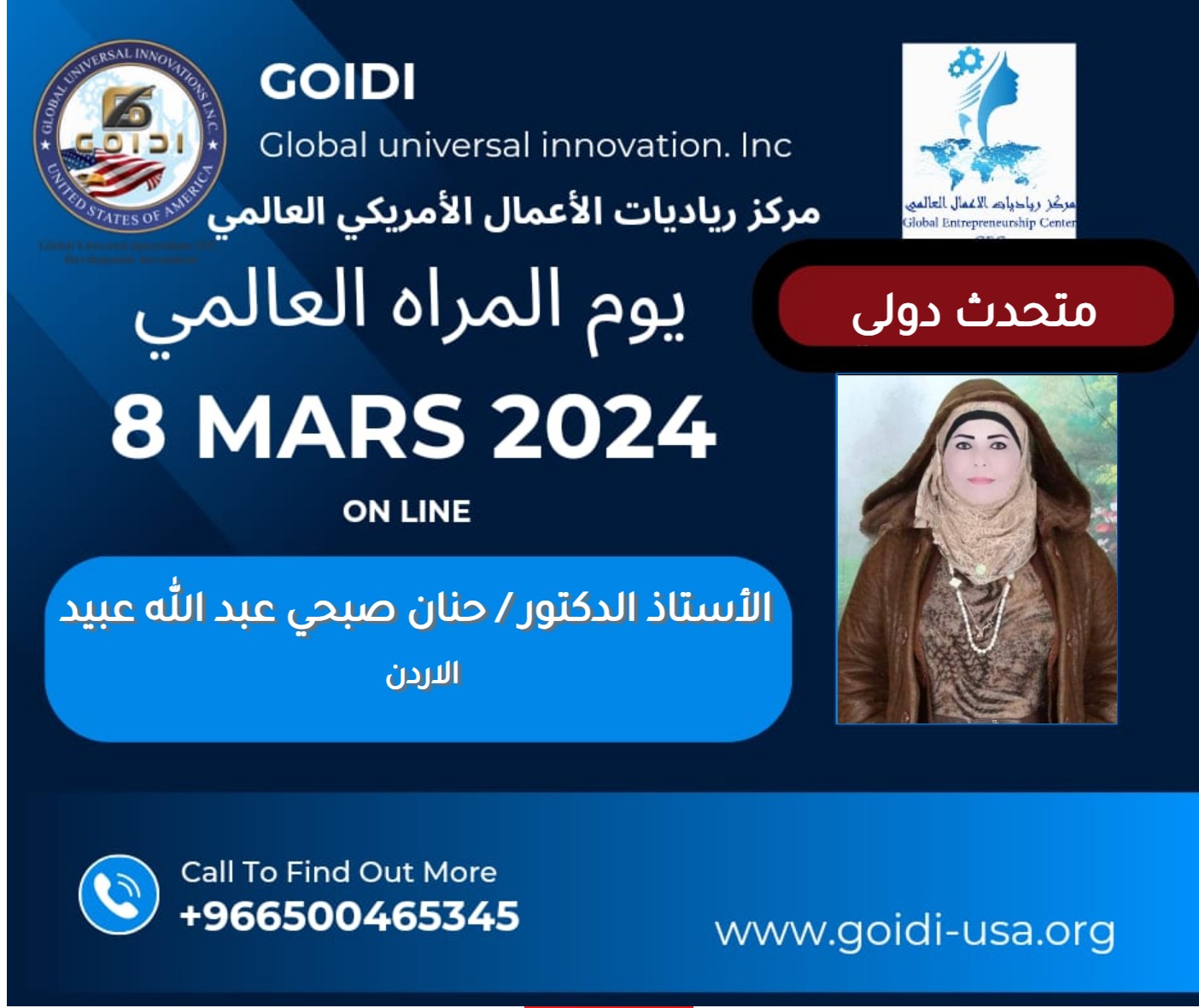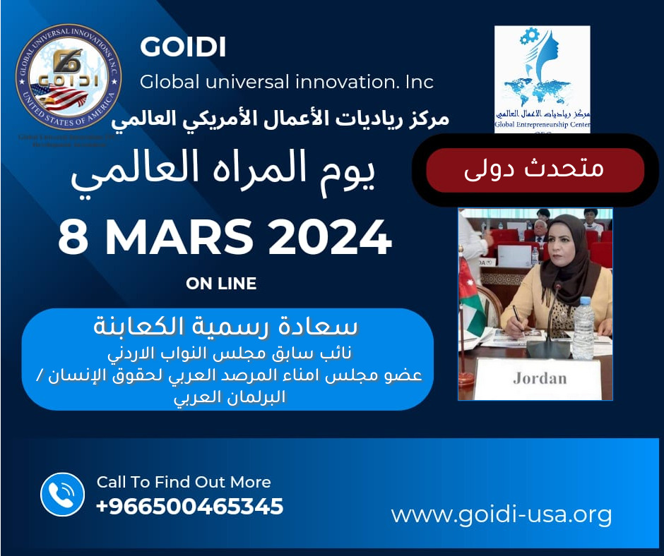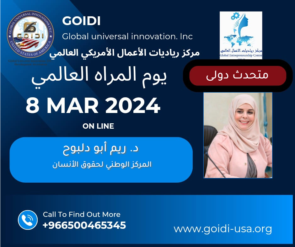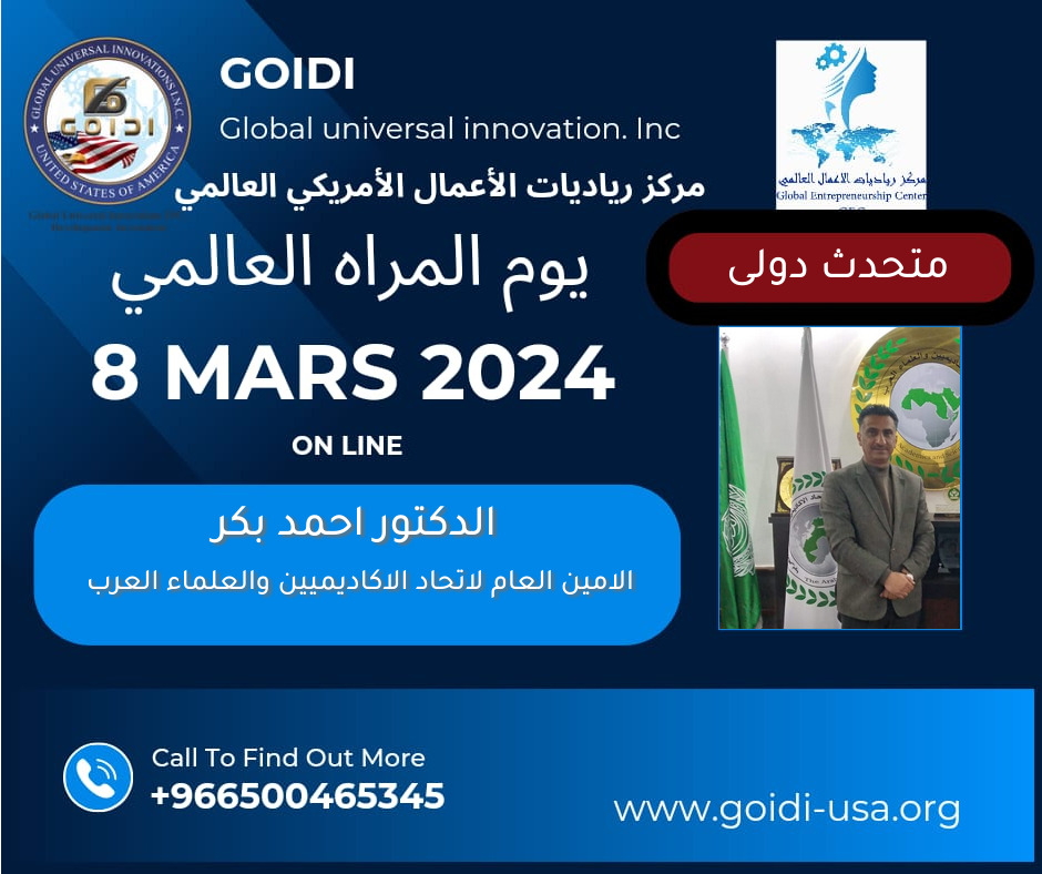 Accordingly, the Global universal Innovation.inc for Invention, Development, and Investment (G.O.I.D.I.), headquartered in the United States, has decided to celebrate this day with the women of the world through its Global Women Entrepreneurship Center (G.W.E.C.). G.W.E.C. is one of G.O.I.D.I.'s institutions that embraces women's programs.