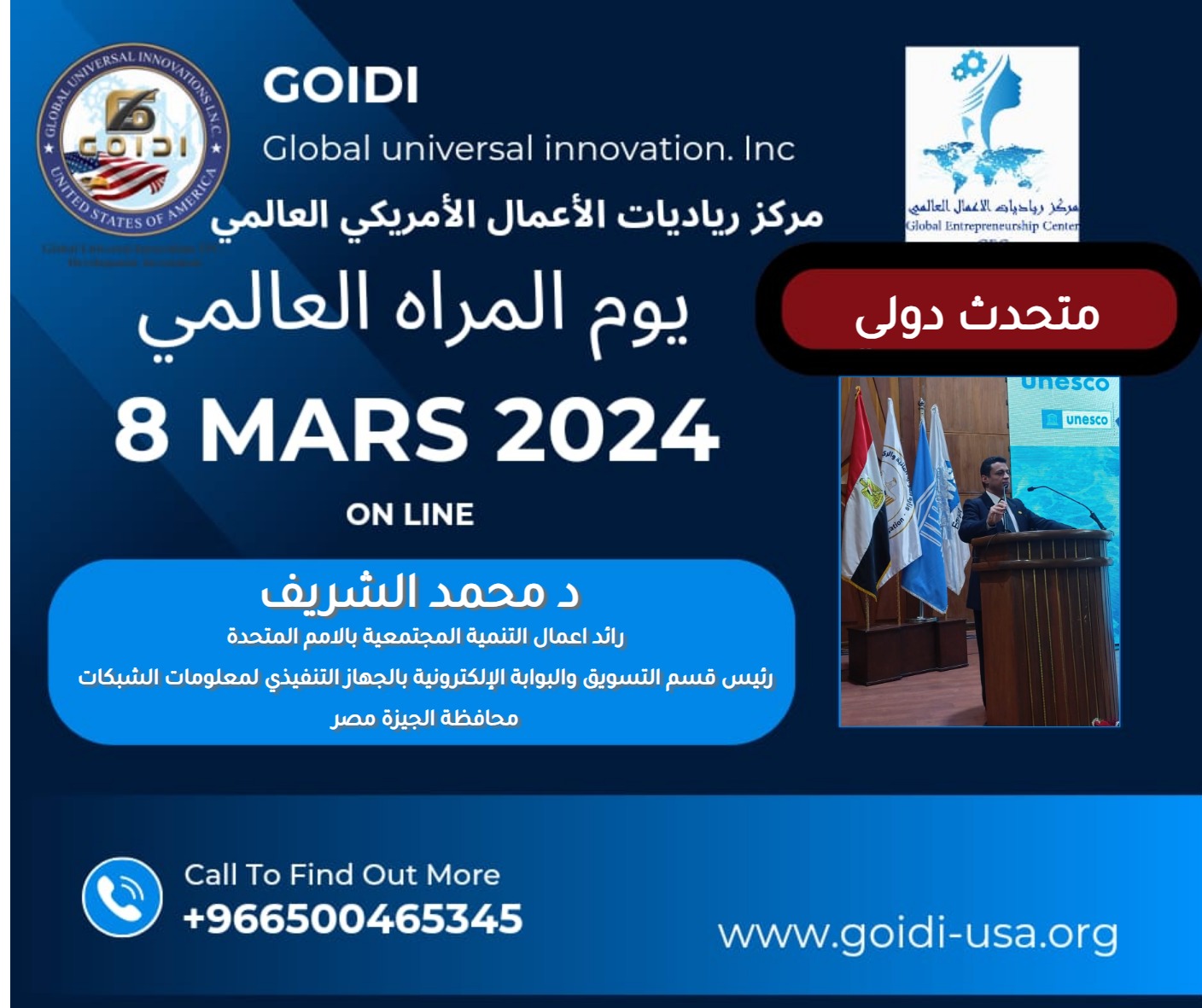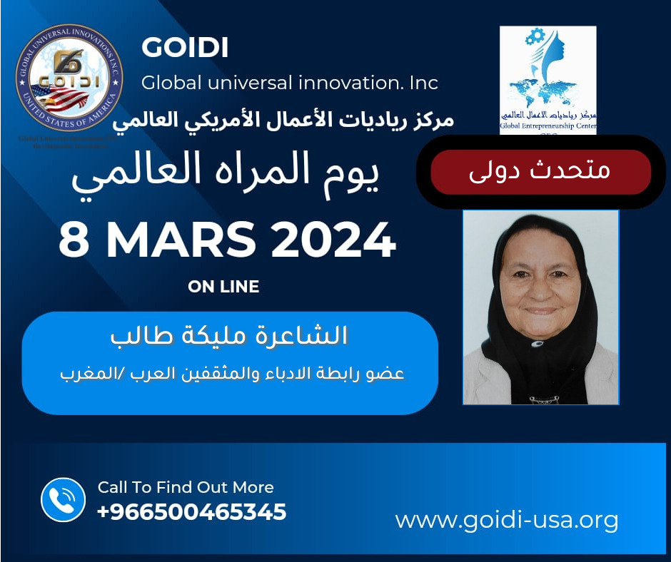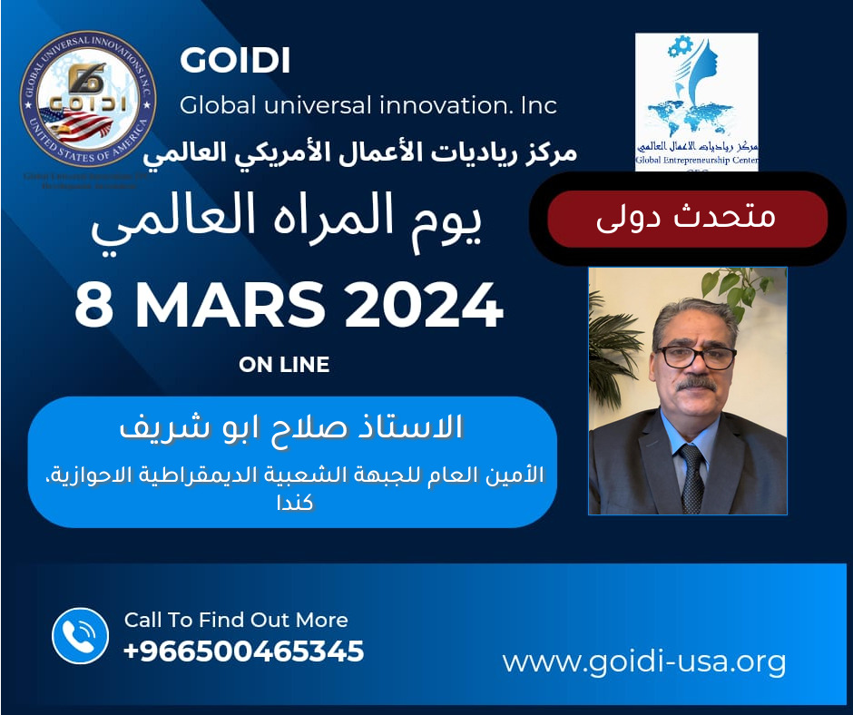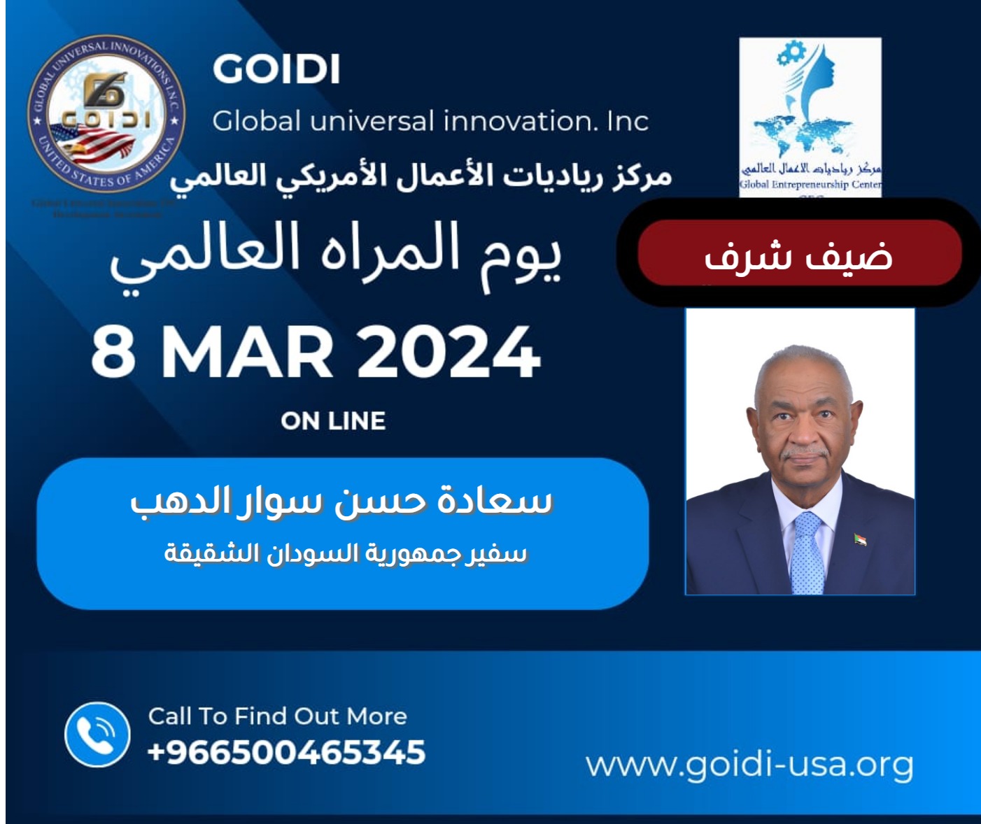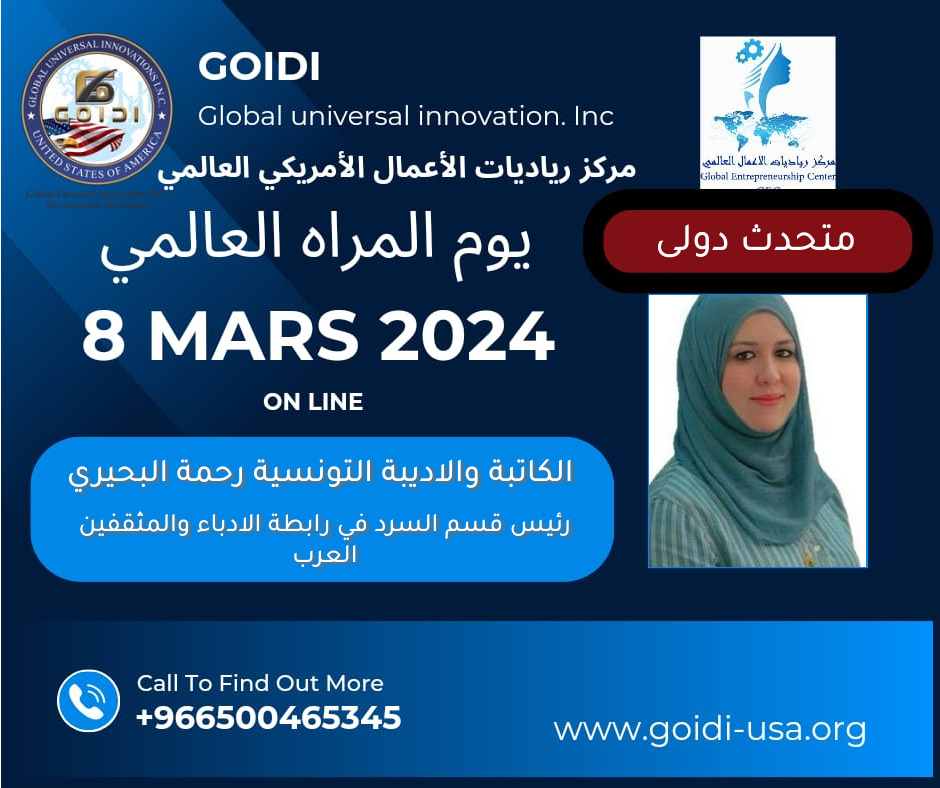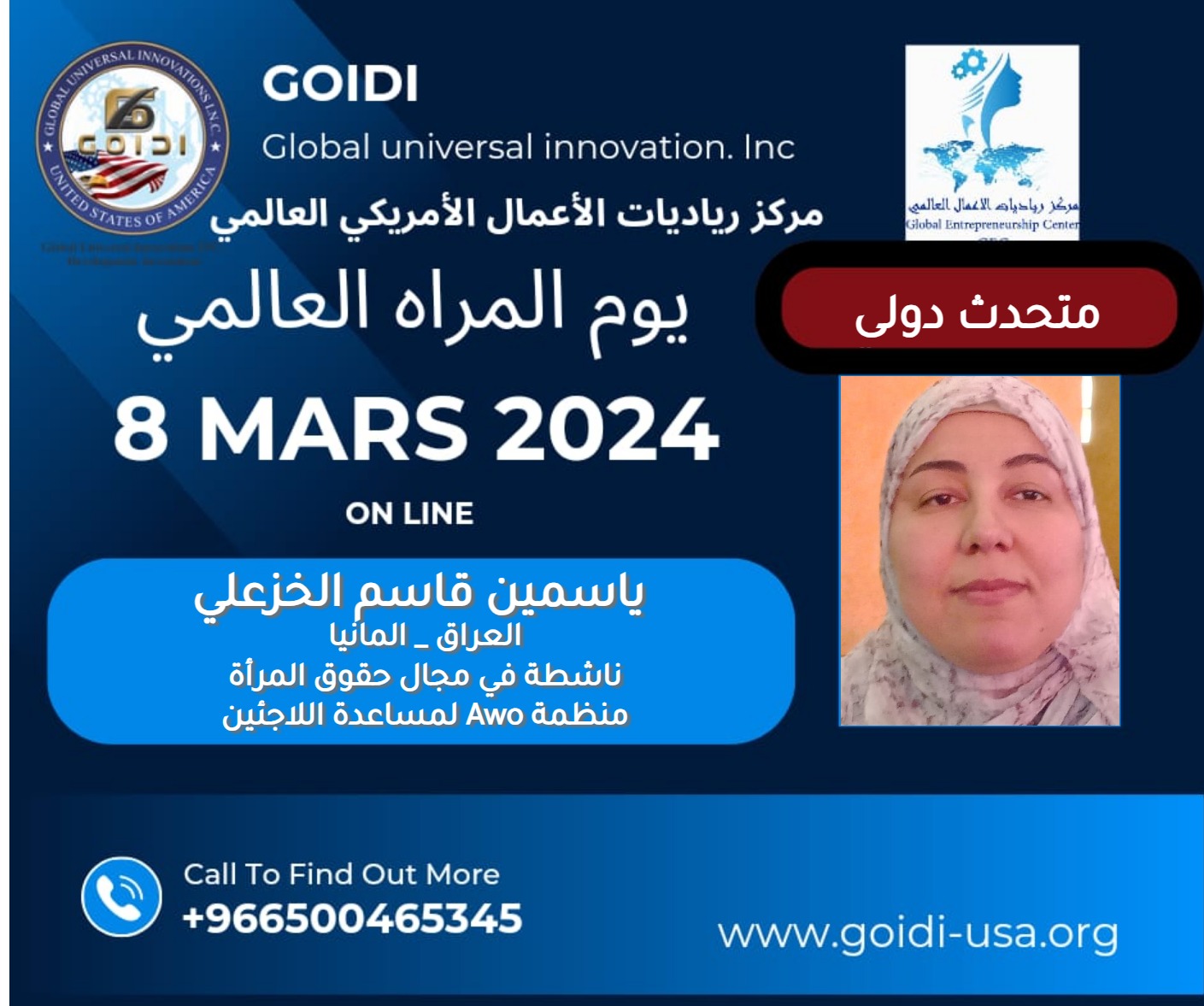 Accordingly, the Global universal Innovation.inc for Invention, Development, and Investment (G.O.I.D.I.), headquartered in the United States, has decided to celebrate this day with the women of the world through its Global Women Entrepreneurship Center (G.W.E.C.). G.W.E.C. is one of G.O.I.D.I.'s institutions that embraces women's programs.