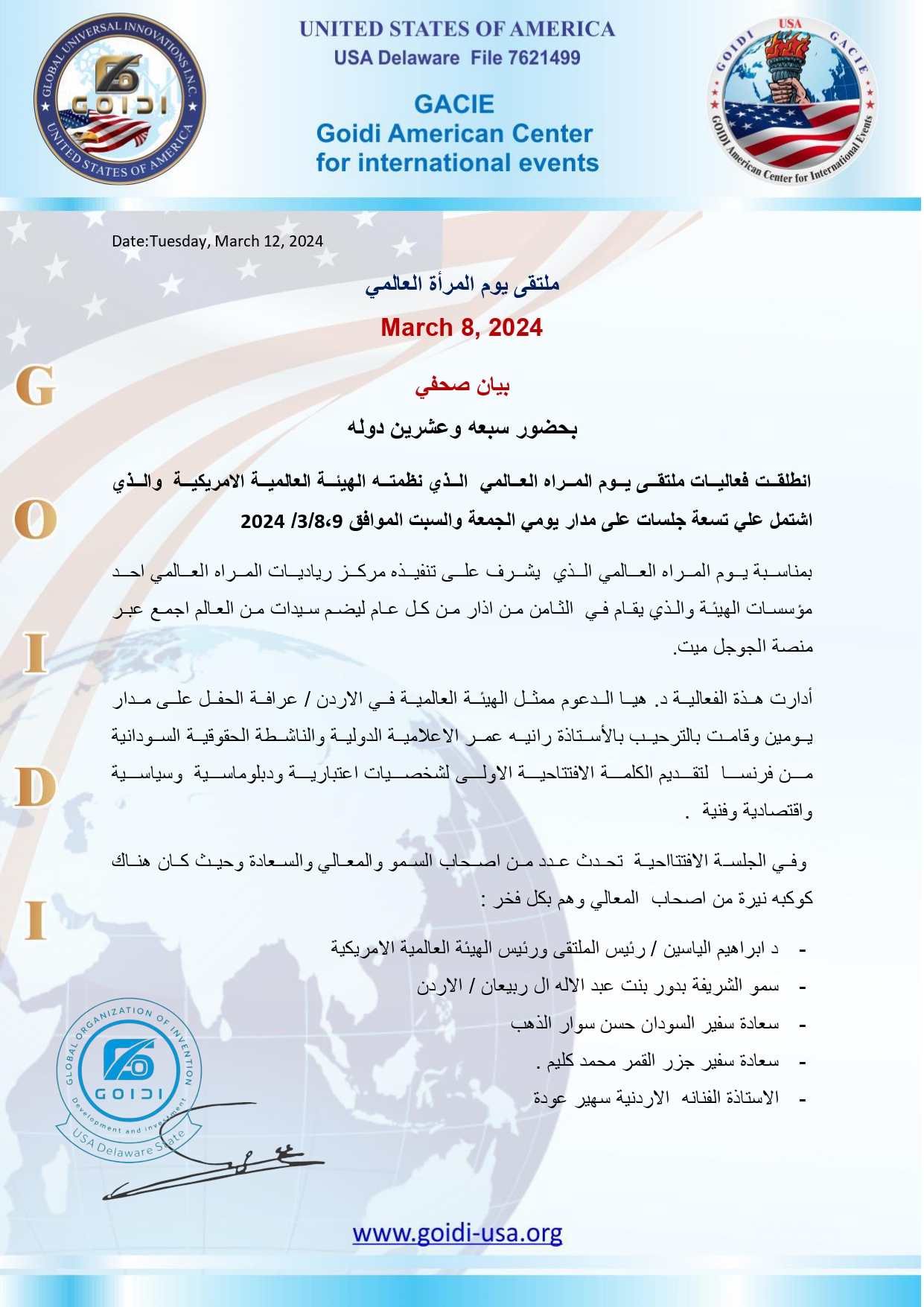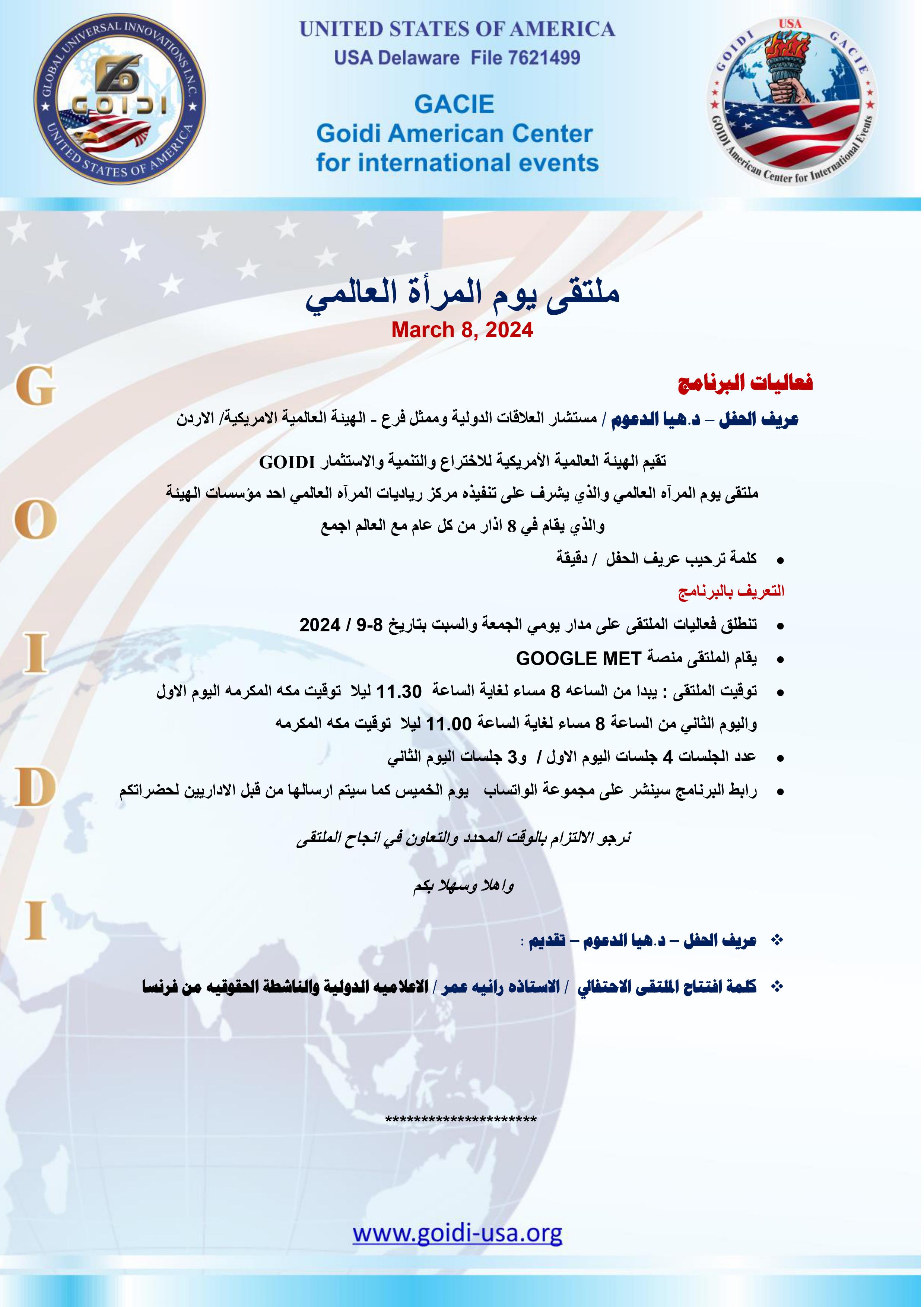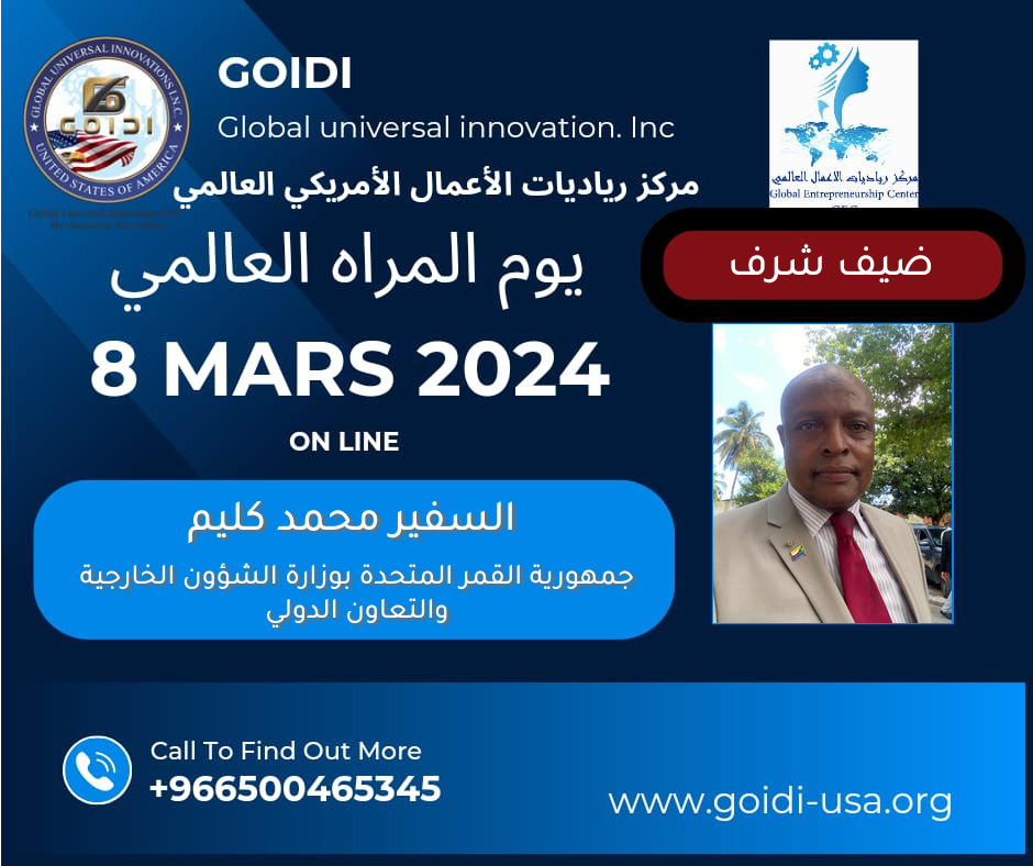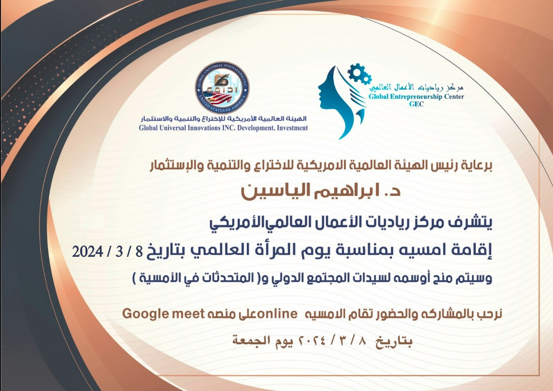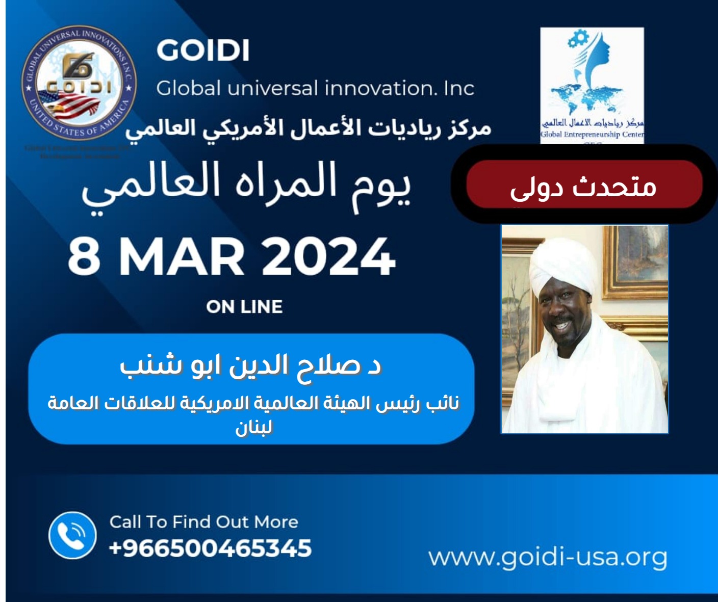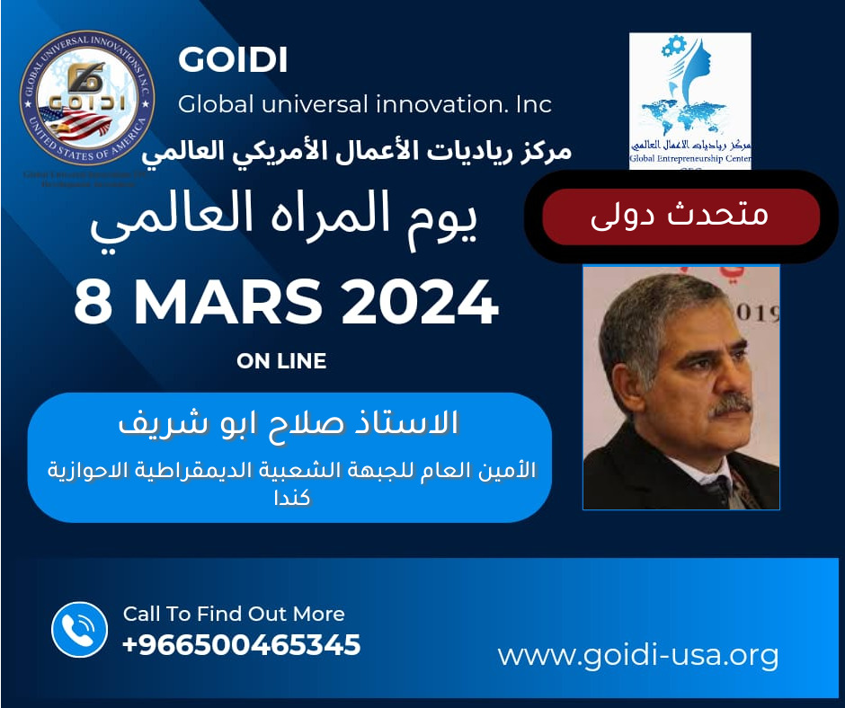 Accordingly, the Global universal Innovation.inc for Invention, Development, and Investment (G.O.I.D.I.), headquartered in the United States, has decided to celebrate this day with the women of the world through its Global Women Entrepreneurship Center (G.W.E.C.). G.W.E.C. is one of G.O.I.D.I.'s institutions that embraces women's programs.