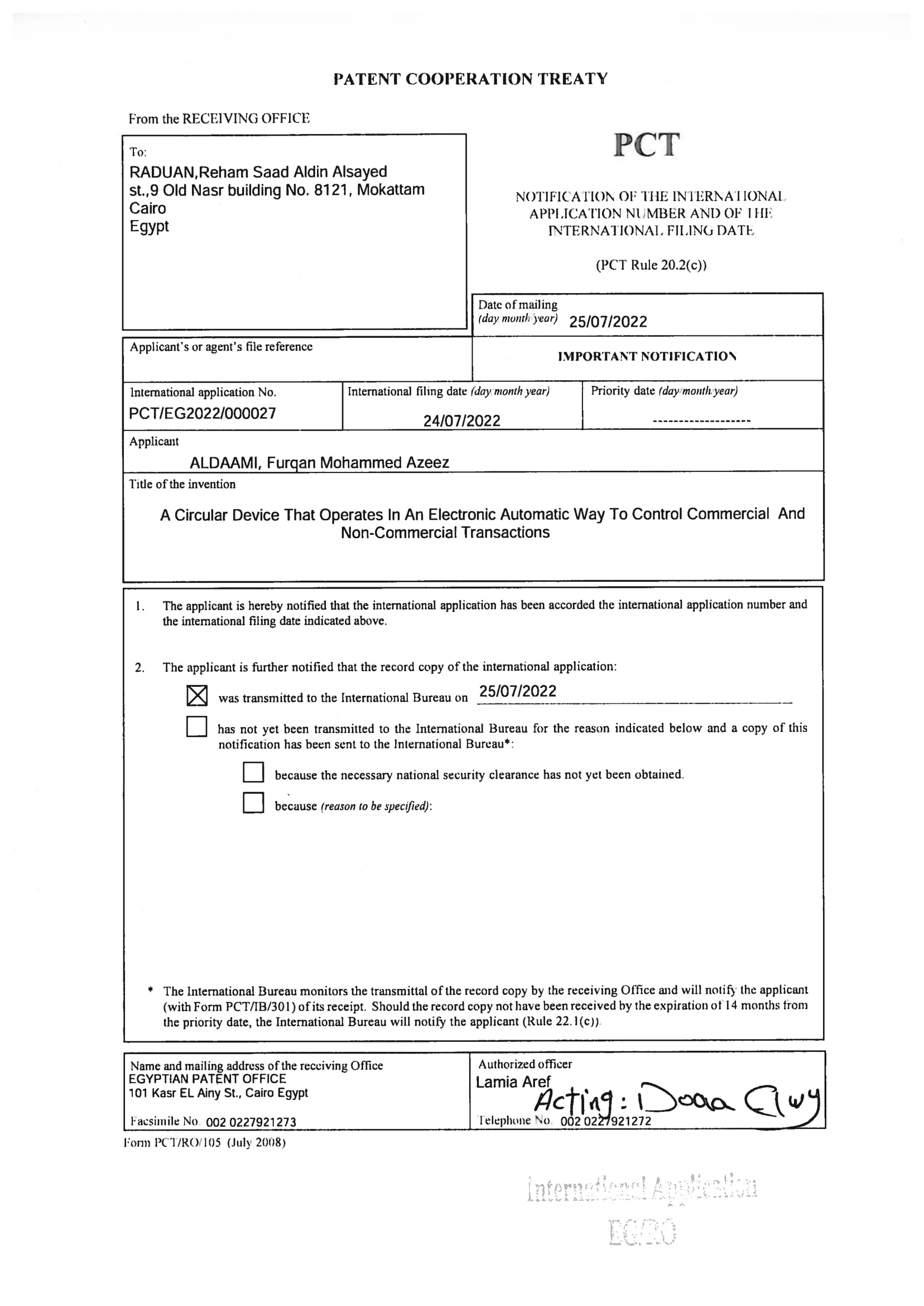 Patent Registration Department